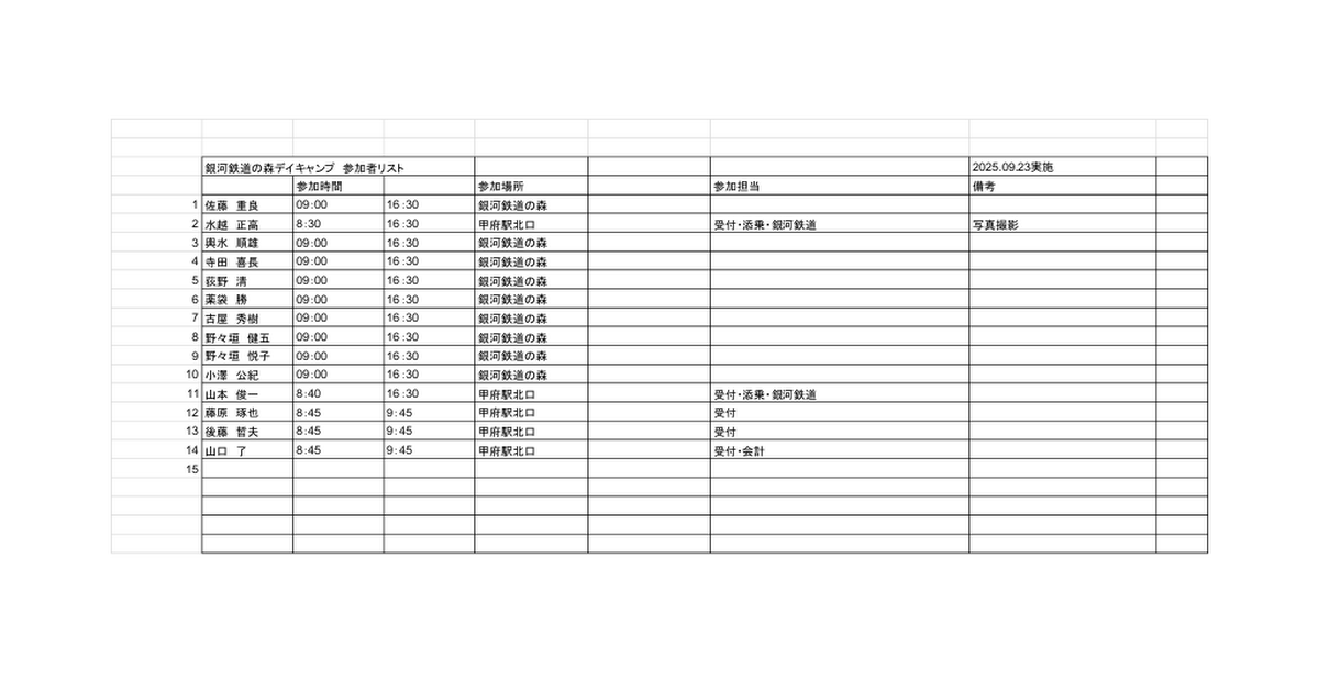 銀河鉄道の森 デイキャンプ 9月23日実施報告